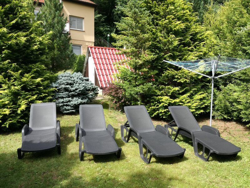 Podkrovní apartmám a zahradní vyžití tj. stolní tenis, trampolína, houpačky a dětské pískoviště je k dispozici od začátku května do konce září.